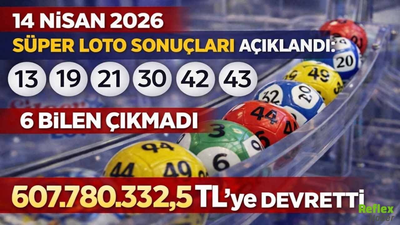 14 Nisan 2026 tarihli Süper Loto çekilişinde kazandıran numaralar 13, 19, 21, 30, 42 ve 43 olarak açıklandı. Çekiliş sonrası en çok merak edilen başlık, büyük ikramiyenin talihliye gidip gitmediği oldu. Açıklanan sonuç listesine göre 6 bilen çıkmadı ve ana ikramiye yine devretti. Böylece sonraki çekilişte dağıtılacak büyük tutar 607.780.332,53 TL’ye yükseldi.