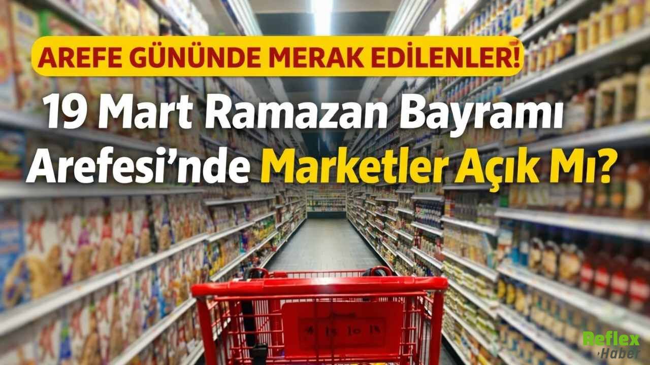 2026 Ramazan Bayramı Arefesi olan 19 Mart Perşembe günü marketlerin açık olması bekleniyor. Zincir marketlerden Arefe günü kapalı olacaklarına dair resmi bir açıklama bulunmazken, geçmiş yıllarda olduğu gibi normal çalışma saatlerine yakın bir düzenle hizmet verilmesi öngörülüyor. Gün içerisinde yoğunluk yaşanabileceği için alışverişlerin erken saatlerde yapılması tercih ediliyor.