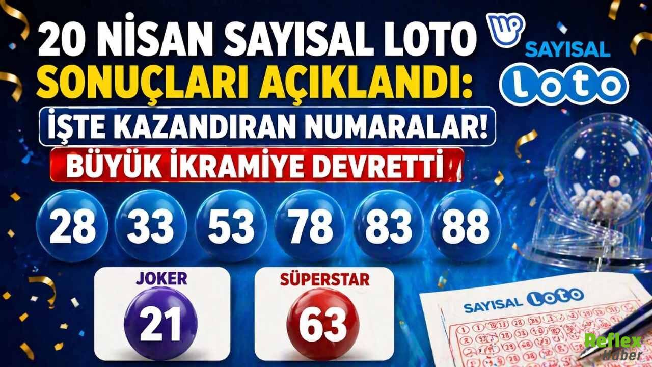 20 Nisan 2026 Pazartesi günü saat 21.30’da gerçekleştirilen Sayısal Loto çekilişinin sonuçları belli oldu. Şans oyunu severlerin yakından takip ettiği haftanın çekilişinde kazandıran numaralar açıklandı. Büyük ikramiye hayali kuran binlerce kişi sonuç ekranını kontrol ederken, bu haftaki çekilişte 6 bilen çıkmadı. Böylece büyük ikramiye bir kez daha devretti. Çekilişte hem ana numaralar hem de Joker ve SüperStar sayıları ilan edildi. Kazanan kategoriler ve dağıtılan ikramiye tutarları da duyuruldu.