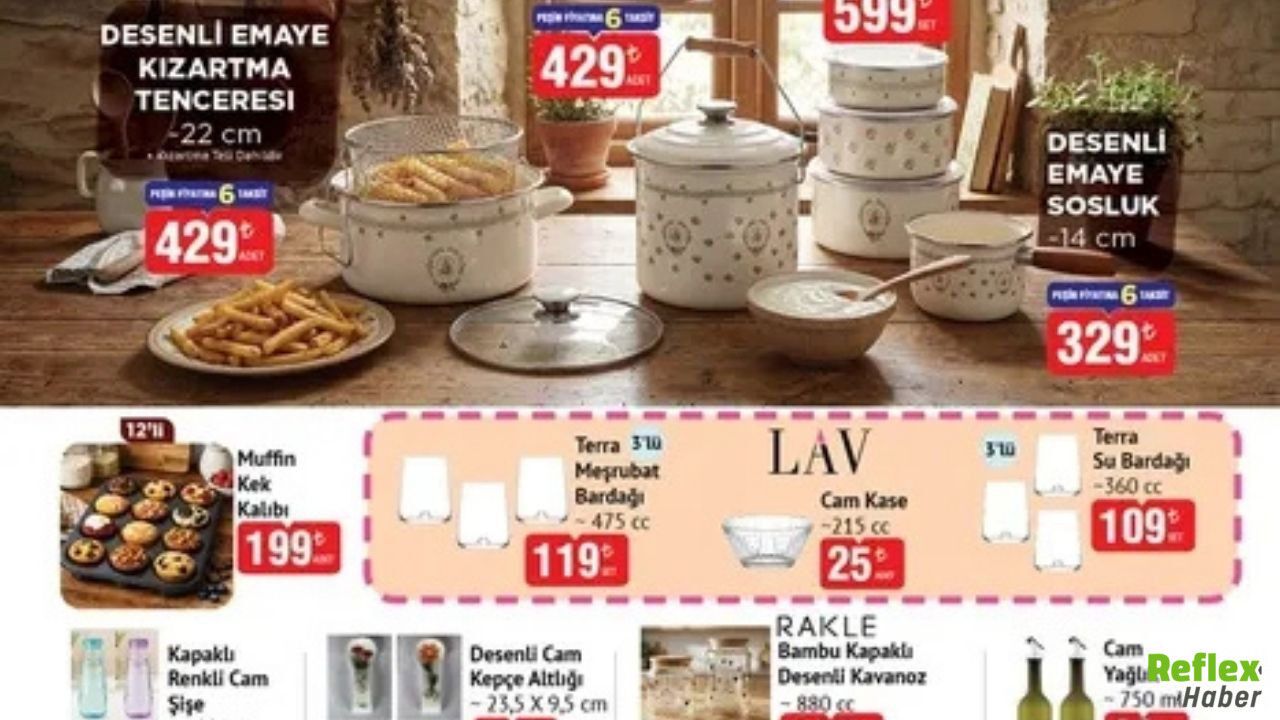 Yeni katalogda mutfak kullanımına yönelik birçok ürün de bulunuyor. Oval servis tabağı ve desenli fırın kabı gibi mutfak araç gereçleri alışveriş listelerinde öne çıkan seçenekler arasında bulunuyor.