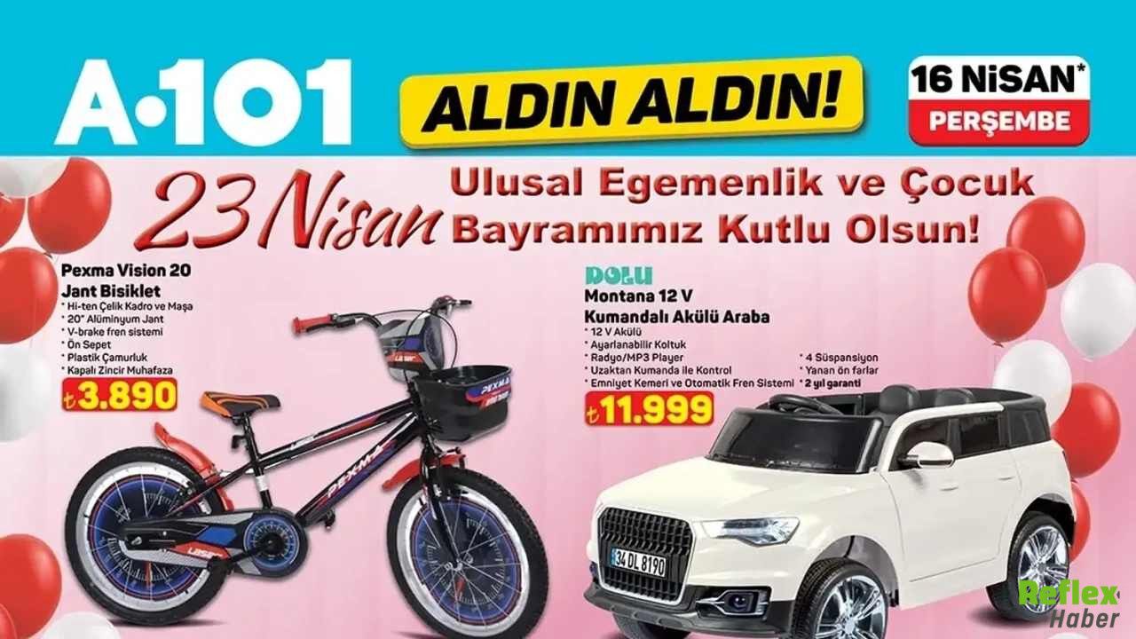 A101’in 16 Nisan 2026 tarihli aktüel ürün kataloğu, market raflarına gelecek indirimli ürünlerle yeniden gündeme geldi. Yeni katalogda teknoloji ürünlerinden elektrikli araçlara, beyaz eşyadan çocuklara yönelik ürünlere kadar geniş ürün yelpazesi yer aldı. Nisan ayının ortasında satışa çıkacak ürünler arasında televizyon modelleri, medya oynatıcı cihazlar, elektrikli mopedler, motorlu bisikletler, beyaz eşya ürünleri, oyuncaklar ve 23 Nisan’a yönelik ürünler öne çıktı. Aktüel listede hem fiziksel mağazalarda satışa sunulacak hem de market kanalıyla sipariş verilebilecek ürünler bulunuyor. Farklı bütçelere hitap eden ürünlerin yer aldığı katalog, alışveriş planı yapan vatandaşların dikkatini çekti. Televizyon ve elektronik ürünlerde büyük ekran seçenekleriyle birlikte daha ulaşılabilir modeller de listede yer aldı. Çocuklara yönelik bayram temalı ürünler ve kırtasiye seçenekleri de katalogda kendine yer buldu.