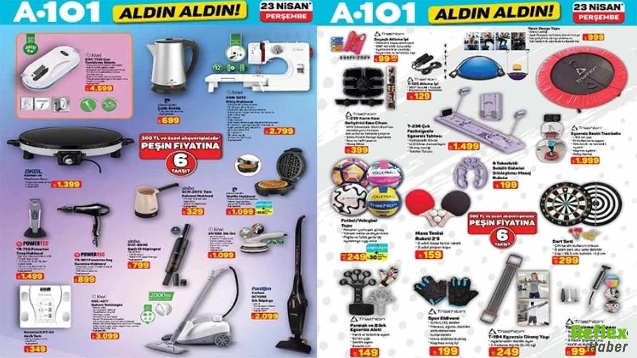 Türkiye genelinde mağazaları bulunan A101, 23 Nisan 2026 Perşembe günü geçerli olacak Aldın Aldın kataloğunu yayımladı. Bu haftaki aktüel ürünler listesinde teknolojiden beyaz eşyaya, mutfak gereçlerinden spor ekipmanlarına kadar geniş bir ürün yelpazesi yer alıyor. Özellikle yüksek fiyatlı elektronik ürünler ve ev yaşamını kolaylaştıran cihazlar katalogda öne çıkıyor. 23 Nisan Perşembe günü itibarıyla satışa sunulacak ürünler sınırlı stoklarla raflarda olacak. Alışveriş planı yapan vatandaşlar için televizyon modelleri, su sebili, cam temizleme robotu ve motosiklet gibi dikkat çeken seçenekler listede yer aldı. Bunun yanında mutfak ürünleri, çocuk oyuncakları, spor aletleri ve temel gıda ürünleri de kampanya kapsamında satışa çıkacak. A101’in haftalık kampanya broşürü, farklı bütçelere hitap eden ürünleri tek çatı altında topluyor. İşte 23 Nisan 2026 A101 aktüel ürünler kataloğunda yer alan fırsatların detayları.