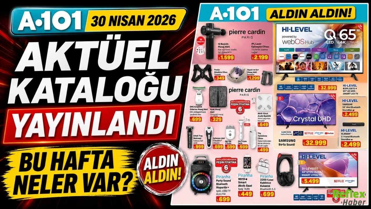 Türkiye genelinde binlerce şubesi bulunan perakende zinciri A101, 30 Nisan 2026 Perşembe tarihli aktüel ürünler kataloğunu duyurdu. Aldın Aldın ve Haftanın Yıldızları kampanyası kapsamında elektronik ürünlerden beyaz eşyaya, kamp malzemelerinden kişisel bakım ürünlerine kadar geniş bir ürün listesi raflara geliyor. Bu hafta özellikle büyük ekran televizyonlar, beyaz eşyalar ve outdoor ürünler dikkat çekiyor. Uygun fiyatlı günlük ihtiyaçların yanı sıra yüksek tutarlı teknoloji ürünleri de katalogda yer alıyor.