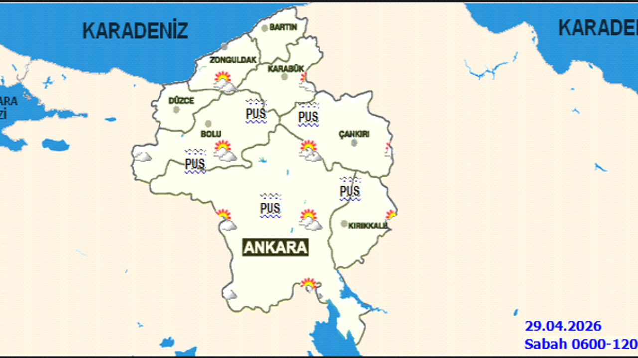 Ankara'da 29 Nisan 2026 Salı günü hava parçalı bulutlu olacak. Meteoroloji Genel Müdürlüğü'nün (MGM) verilerine göre, başkentte en düşük sıcaklık 7 derece, en yüksek sıcaklık ise 21 derece civarında seyredecek.