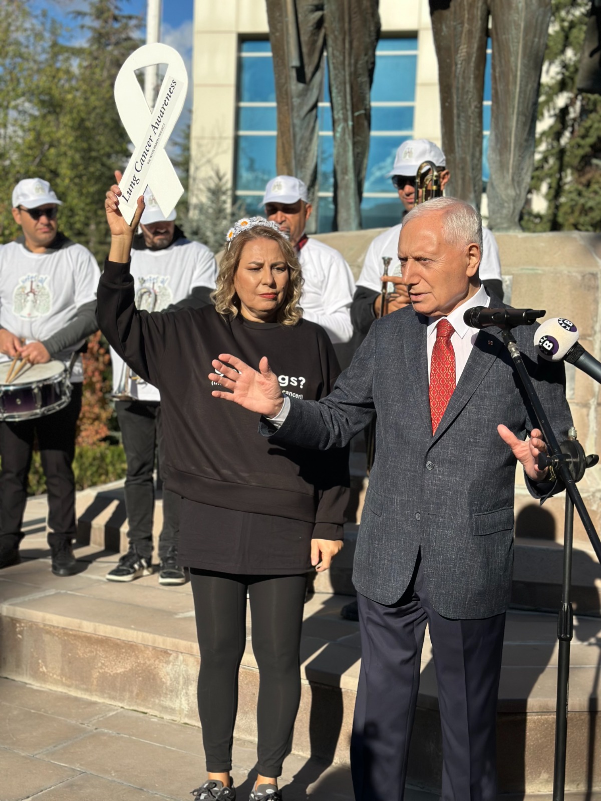 Başkent Üniversitesi Sağlık Kuruluşları Direktörü Prof. Dr. Ali Haberal, gazeteci-yazar Serhan Asker, Nursen Yavaş ve CHP Protokol Müdürü Şükran Kütükçü, etkinliğe katılarak akciğer kanseri farkındalık çalışmalarına destek verdi.