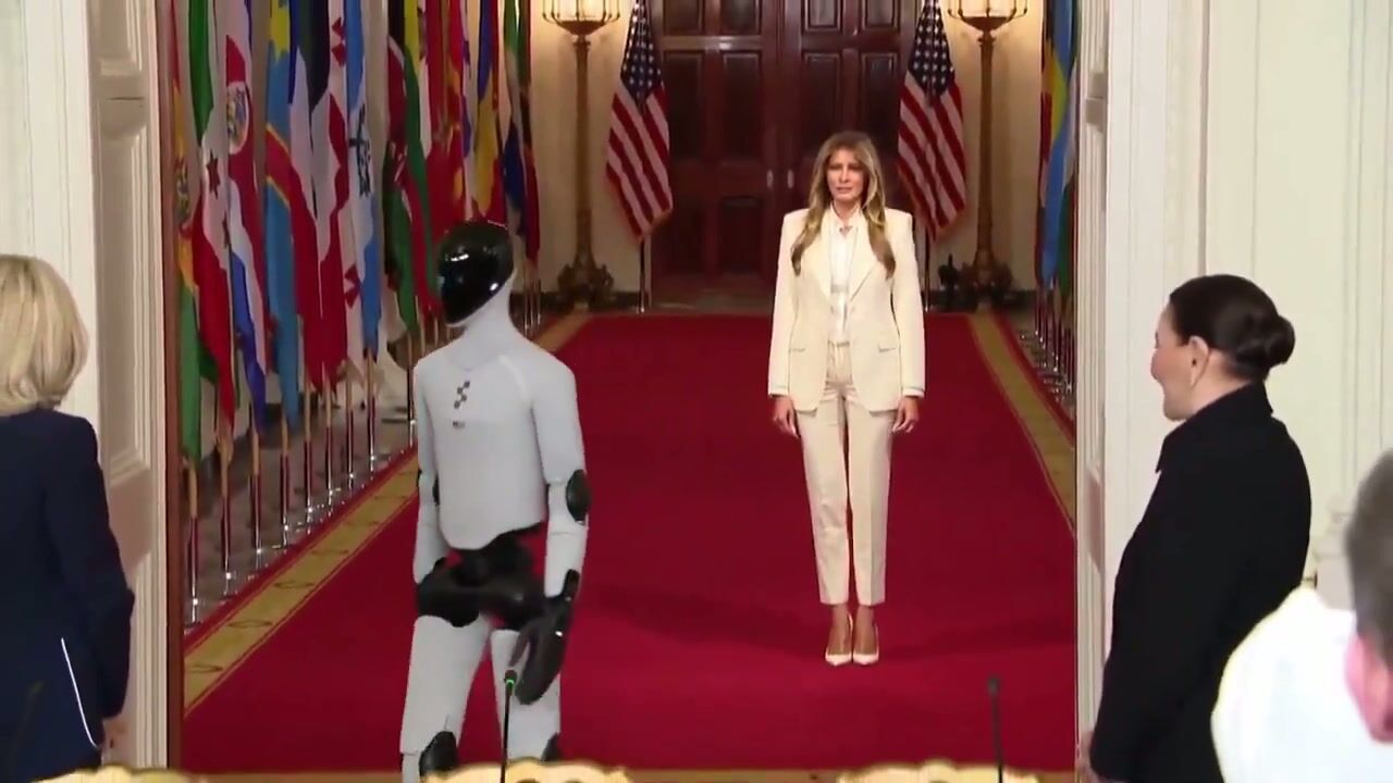 Beyaz Saray'da düzenlenen eğitim teknolojileri konulu zirvede ilginç anlar yaşandı. ABD eski First Lady'si Melania Trump'a, etkinlik sırasında yapay zeka destekli insansı bir robot eşlik etti.