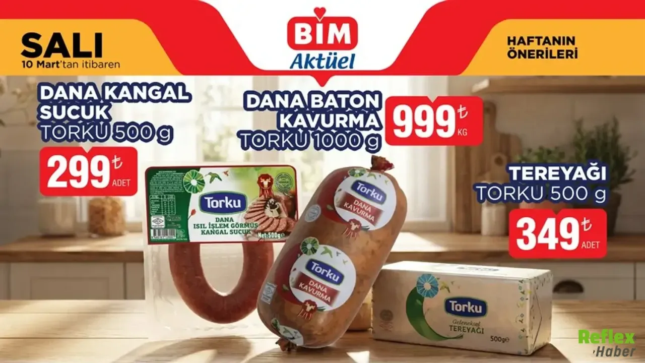 BİM 10 Mart kataloğunda kahvaltılık ve şarküteri ürünleri öne çıkıyor. Torku Dana Baton Kavurma 1000 gramlık paket halinde 999 TL’den satışa sunulacak. Torku Kangal Sucuk 500 gram ise 299 TL fiyat etiketiyle raflarda olacak. Süt ve süt ürünleri kategorisinde Dost 5 kilogram yarım yağlı yoğurt 229 TL, Teksüt tam yağlı taze kaşar peyniri 1000 gram ise 359 TL fiyatla satışa çıkacak. Büyük gramajlı ürünlerin yer aldığı katalog, özellikle aylık mutfak alışverişi yapan aileler için avantajlı seçenekler sunuyor.