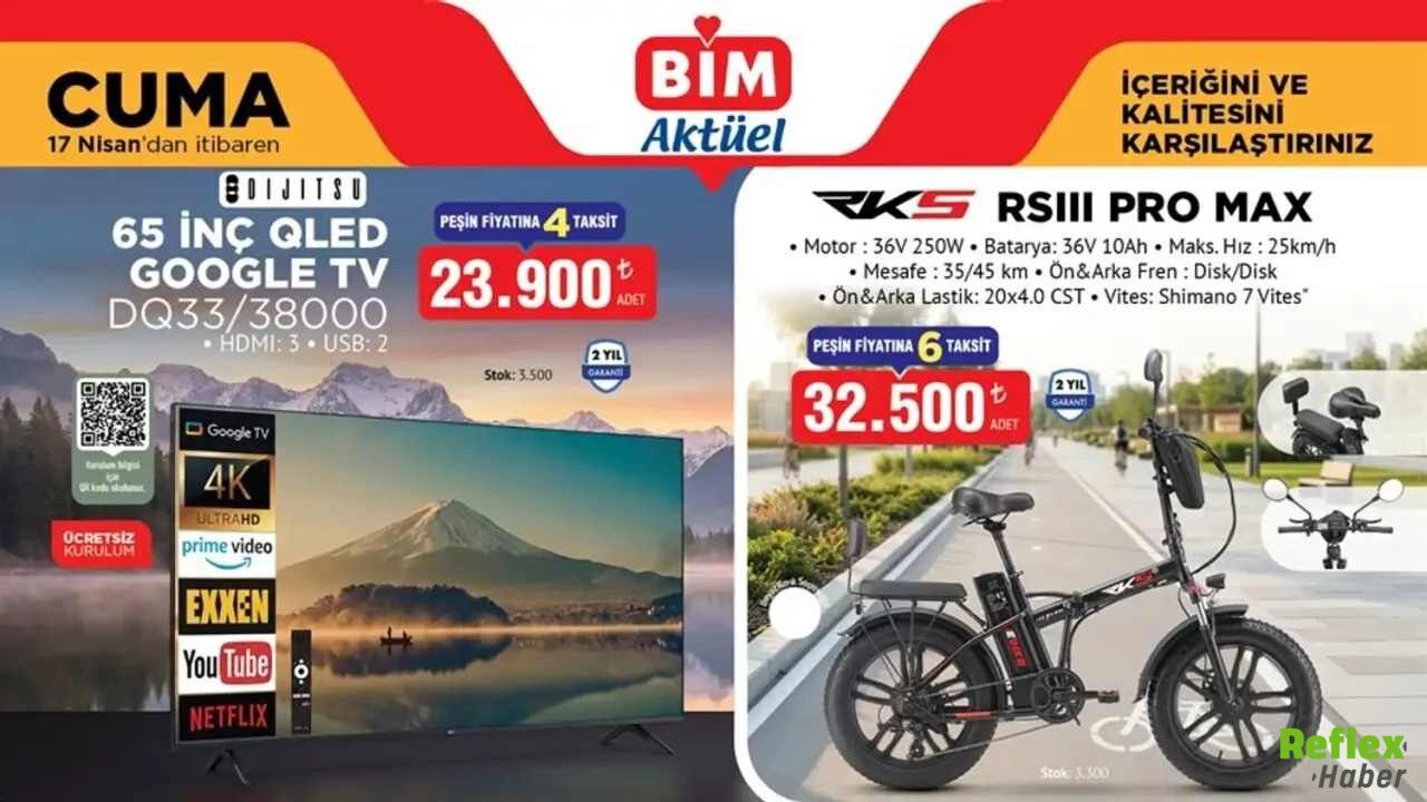 BİM’in 17 Nisan 2026 Cuma günü raflara gelecek aktüel kataloğu kamuoyuyla paylaşıldı. Yeni katalogda toplam 6 sayfada 131 ürün yer alıyor. Ev elektroniğinden küçük ev aletlerine, tekstilden züccaciyeye, oyuncaktan kişisel kullanım ürünlerine kadar geniş ürün listesi dikkat çekiyor. Katalogda Kumtel ankastre set, Arnica dikey süpürge, halı yıkama makinesi, Tefal buharlı el ütüsü, Philips dikey ütü, Abdullah Efendi Türk kahve makinesi, Powertech saç kurutma makinesi ve Emsan çay makinesi gibi öne çıkan ürünler bulunuyor. Aynı katalogda televizyon, cep telefonu, elektrikli scooter, kulaklık, karaoke mikrofonu, masa lambası, çocuklara yönelik oyuncaklar, ev düzenine yönelik organizerler, ayakkabılık, banyo ürünleri, terlik, nevresim seti ve mutfak gereçleri de satış listesine girdi. 23 Nisan Ulusal Egemenlik ve Çocuk Bayramı öncesine denk gelen kampanya döneminde çocuklara yönelik ürünlerin de raflarda yer alacağı görüldü. Paylaşılan fiyatlar ile ürün çeşitliliği, alışveriş planı yapan tüketicilerin yakın takibine girdi.