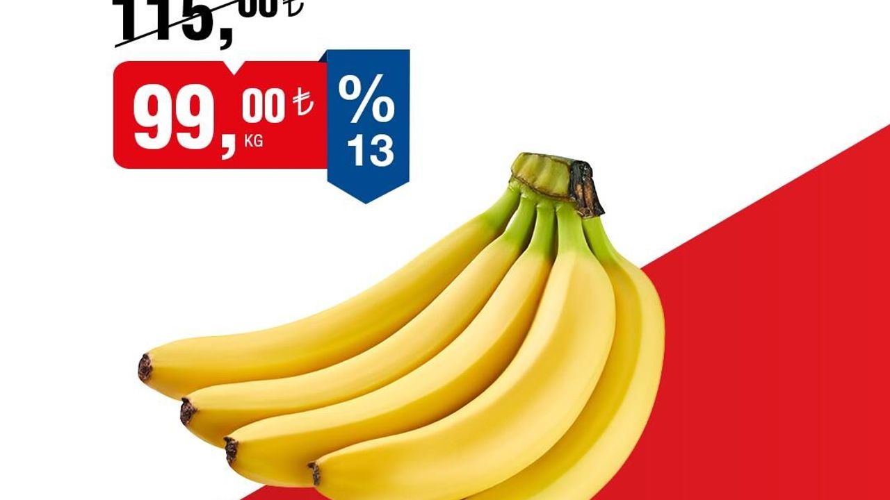 Market zincirinden yapılan açıklamaya göre, ithal muzun kilogram fiyatı 99,00 TL'den satışa sunulacak. Bu ürün için stok miktarı 1.400.000 kilogram olarak belirtildi.