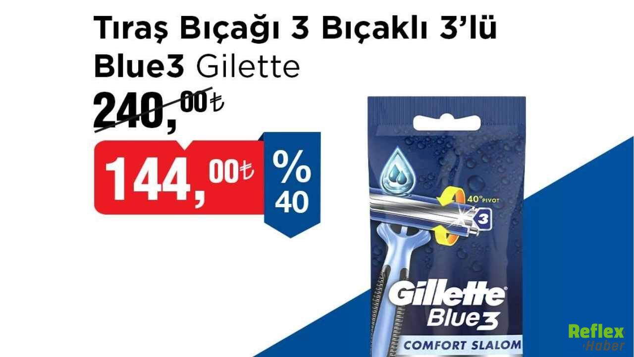 Kampanyanın öne çıkan ürünlerinden biri Gillette Blue3 3’lü tıraş bıçağı oldu. Normal satış fiyatı 240 TL olan ürün, kampanya kapsamında 144 TL’den satışa sunulacak. Bu indirim, ürün fiyatında yaklaşık yüzde 40’lık bir düşüş anlamına geliyor.