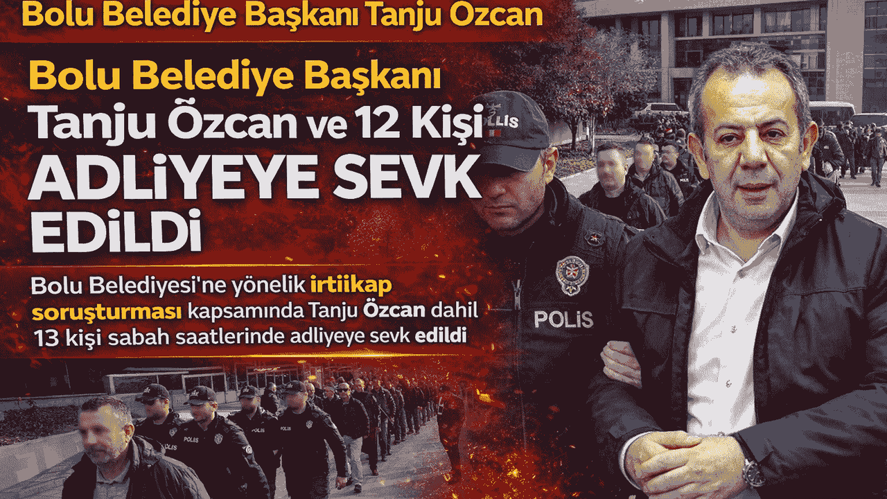 Bolu Cumhuriyet Başsavcılığı tarafından yürütülen irtikap soruşturması kapsamında Bolu Belediye Başkanı Tanju Özcan dahil 13 kişi adliyeye sevk edildi. Kamu görevlisinin, görevinin sağladığı nüfuzu kullanarak kendisine ya da başkasına haksız menfaat temin etmeye zorlaması olarak tanımlanan irtikap suçu çerçevesinde başlatılan soruşturma kapsamında 28 Şubat sabahı operasyon düzenlendi. Bolu İl Jandarma Komutanlığı ekiplerince gerçekleştirilen eş zamanlı baskınlarda gözaltına alınan şüphelilerin, iki gün süren ifade işlemlerinin ardından sabah saatlerinde sağlık kontrolünden geçirilerek adliyeye sevk edildiği bildirildi. Soruşturma süreci kamuoyunda yakından takip ediliyor.