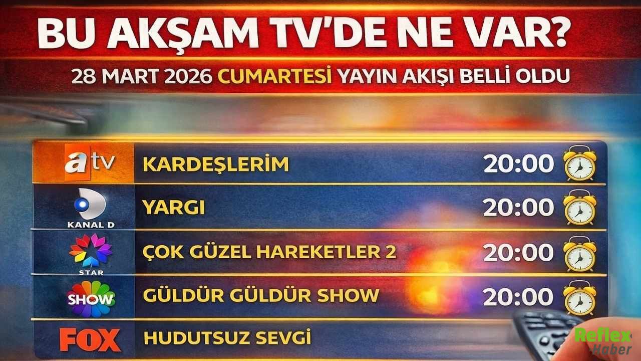 Hafta sonunu ekran başında geçirmek isteyen izleyiciler için 28 Mart 2026 Cumartesi günü televizyon kanallarının yayın akışı netleşti. Ulusal kanallarda bu akşam dizi, film ve eğlence programları geniş bir içerik sunuyor. Özellikle prime time kuşağında yayınlanacak yapımlar, izleyicilere farklı alternatifler sunarken, “Bu akşam TV’de ne var?” sorusu da gündemdeki yerini koruyor.