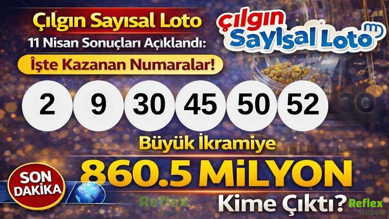 11 Nisan 2026 Cumartesi akşamı gerçekleştirilen Çılgın Sayısal Loto çekilişinin ardından gözler kazanan numaralara çevrildi. Haftalardır yüksek ikramiye tutarıyla dikkat çeken çekiliş sonrası sonuçlar belli oldu. Kuponunu kontrol eden çok sayıda kişi, ana sayılarla birlikte Joker ve Süper Star numarasını da araştırmaya başladı. Açıklanan sonuçlara göre çekilişte öne çıkan rakamlar 2, 9, 30, 45, 50, 52 oldu. Joker numarası 37, Süper Star numarası ise 90 olarak duyuruldu. Büyük ikramiye tutarı nedeniyle gün boyu süren yoğun takip, sonuçların ilan edilmesiyle daha da arttı. Kazandıran rakamları öğrenmek isteyenler resmi çekiliş verilerine yönelirken, ikramiye dağılımı ve kupon detayları da merak konusu oldu. 11 Nisan tarihli çekilişte yer alan sayılar sonrası, loto heyecanı bu hafta da akşam saatlerinde geniş kitlelerin gündeminde yer aldı.