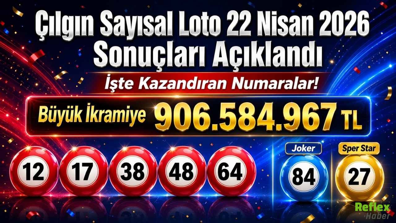Çılgın Sayısal Loto çekilişini takip edenler, 22 Nisan 2026 tarihli sonuçları görmek için sonuç ekranlarına yöneldi. Çekiliş sonrası açıklanan rakamlarla kupon kontrolü yapan vatandaşlar, Joker ve Süper Star numaralarını da aynı listede sorguluyor. Büyük ikramiye tutarı da bu çekilişle beraber yeniden gündeme taşındı. Paylaşılan bilgilere göre büyük ikramiye 906.584.967 TL olarak duyuruldu. Çekiliş sonuçları ile birlikte, alt kategorilerde ikramiye alan kupon sayıları ve ödeme detayları da resmi tablolar üzerinden takip ediliyor. Kupon sahiplerinin, sonuç listesiyle eşleşen numaralarını kontrol ederken tarih ve kolon bilgilerini doğru seçmesi gerekiyor.
