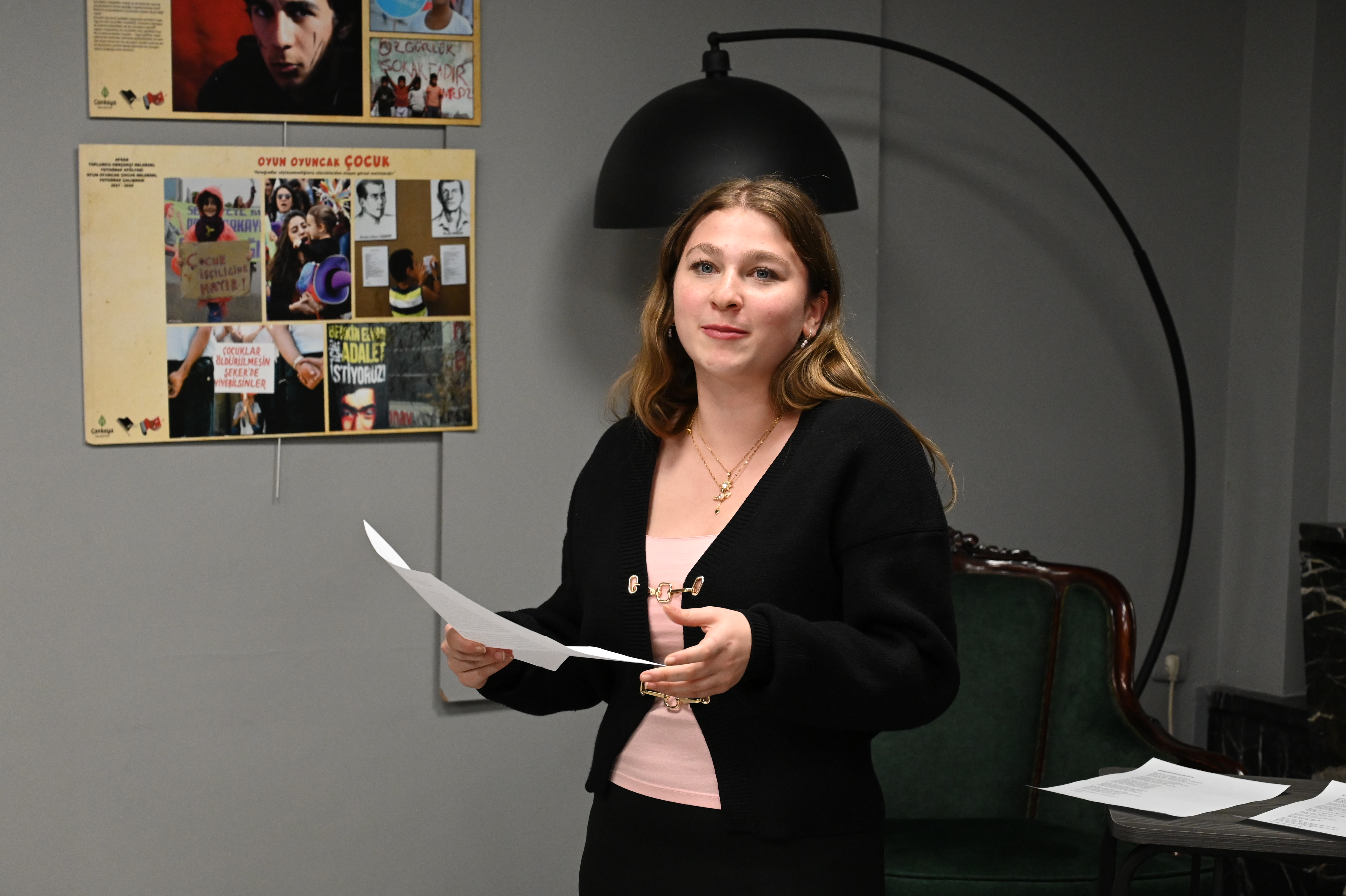 Serginin açılış konuşmasını Atölye Çocuk Danışma Kurulu üyesi Burcu Çubuk yaptı. Çubuk, konuşmasında çocukların karşılaştığı eşitsizliklere dikkat çekerek şunları kaydetti: