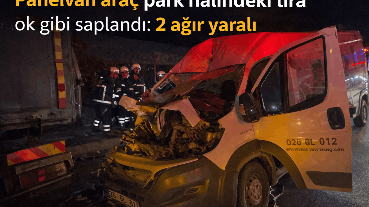 Eskişehir’de Organize Sanayi Bölgesi 20. Cadde üzerinde meydana gelen trafik kazasında panelvan araç, park halindeki tır dorsesine arkadan çarptı. Gece saatlerinde yaşanan kazada 2 kişi ağır yaralandı. Edinilen bilgilere göre Şefik M. yönetimindeki 26 GL 078 plakalı panelvan araç, yol kenarında park halinde bulunan ve sürücüsü Y.A.’nın içerisinde bulunduğu 26 AGP 192 dorse plakalı tıra çarptı. Çarpmanın etkisiyle panelvan aracın ön kısmı dorsenin altına girerek büyük hasar aldı. Olayın ardından çevredeki vatandaşların ihbarı üzerine bölgeye polis, sağlık ve itfaiye ekipleri sevk edildi. Araçta sıkışan yaralıların çıkarılması için ekipler yoğun çalışma yürüttü.