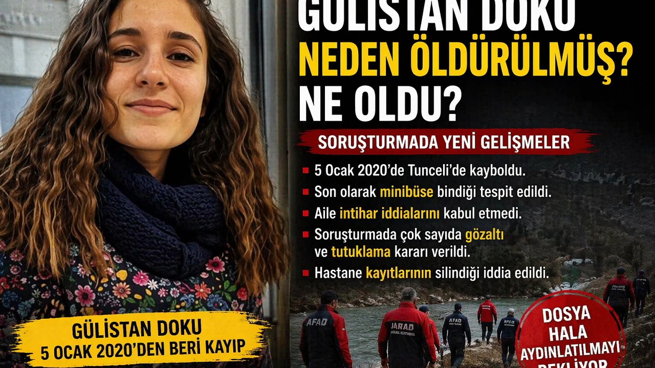Gülistan Doku, 5 Ocak 2020 tarihinde Tunceli’de kaldığı yurttan ayrıldıktan sonra kayboldu ve aradan geçen süreye rağmen akıbeti hâlâ netlik kazanmadı. Yıllardır devam eden arama çalışmaları ve soruşturma süreci, son gelişmelerle yeniden gündeme taşındı. Dosyada ortaya çıkan yeni detaylar, olayın yönüne dair tartışmaları artırdı. “Gülistan Doku’ya ne oldu?” sorusu yeniden yoğun şekilde araştırılmaya başladı.