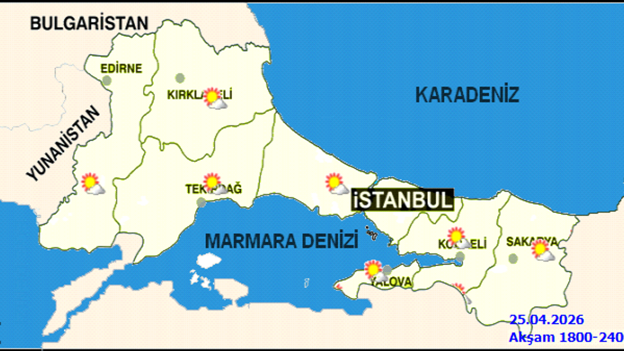 İstanbul'un çeşitli ilçelerinde 26 Nisan Pazar günü beklenen en düşük ve en yüksek sıcaklıklar ile hava durumu şu şekilde: