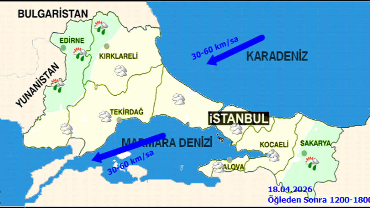 Genel meteorolojik görünüm, bölgede parçalı ve çok bulutlu bir havanın etkili olacağını gösteriyor. Sakarya, Kocaeli, Yalova, Edirne ve Kırklareli'nin bazı çevrelerinde yerel sağanak yağışlar görülebileceği belirtildi. Hava sıcaklıklarının ise mevsim normalleri civarında seyretmesi bekleniyor.