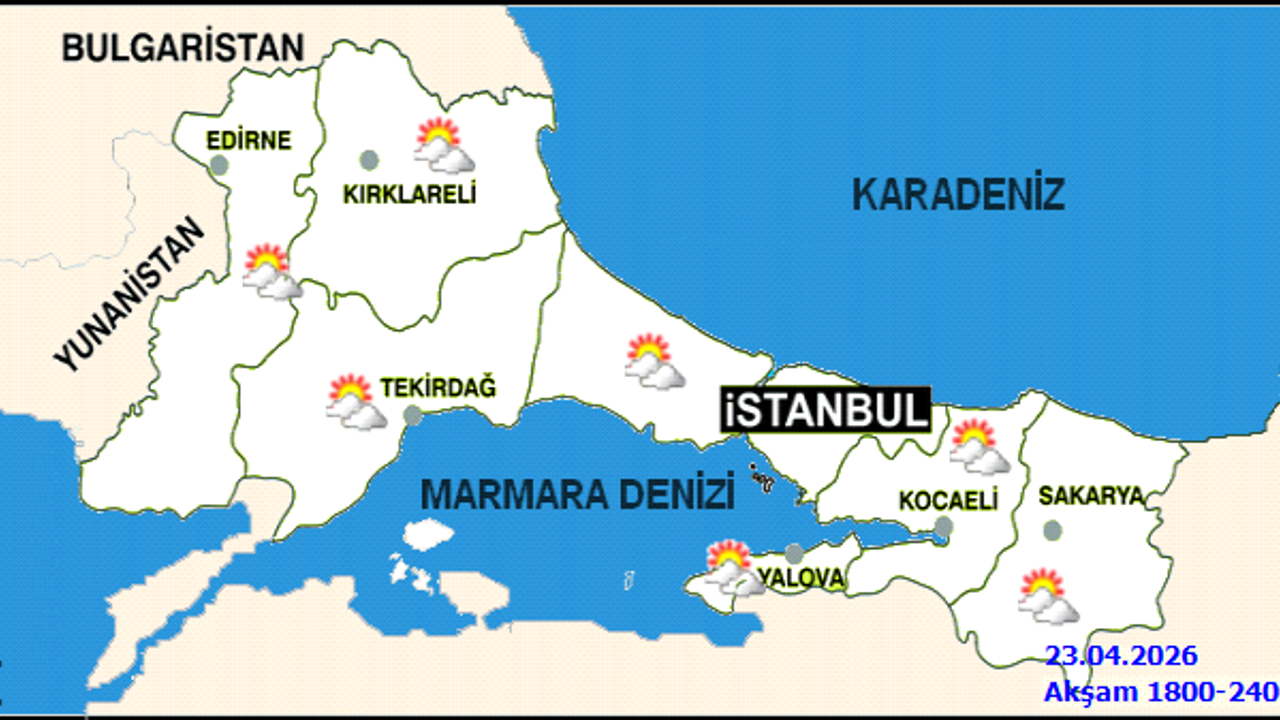 Bugün, 24 Nisan Cuma günü, İstanbul'da hava parçalı ve az bulutlu olacak. Öğle saatlerinde yer yer çok bulutlu bir hava hakim olacak. En düşük sıcaklık 9°C, en yüksek sıcaklık ise 16°C olarak ölçülecek. Rüzgarın kuzeyli yönlerden hafif, ara sıra orta kuvvette esmesi beklenirken, bugün güneyli yönlerden de etkili olacağı tahmin ediliyor.