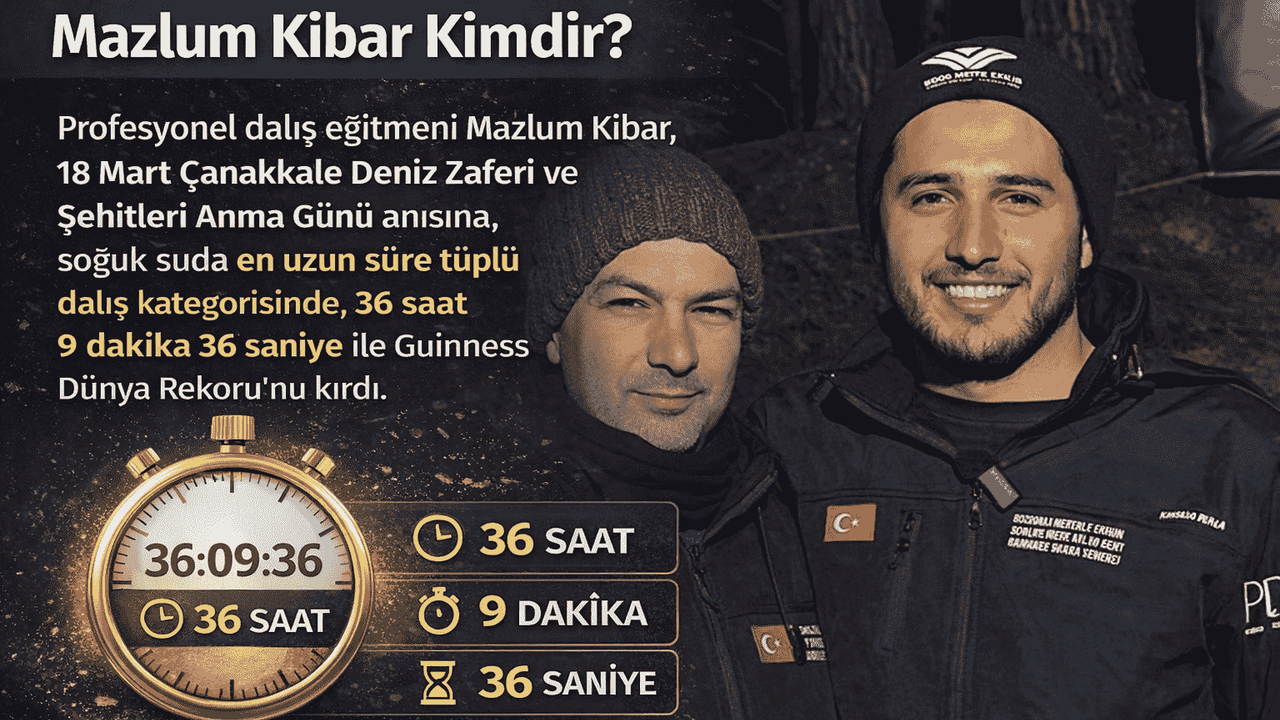 Mazlum Kibar’ın kariyerinde öne çıkan gelişmelerden biri, Çanakkale’de gerçekleştirdiği dünya rekoru denemesi oldu. Çanakkale Zaferi ve Şehitleri Anma Günü kapsamında Gelibolu Yarımadası’nda düzenlenen organizasyonda Kibar, soğuk suda en uzun süre tüplü dalış rekorunu elde etti.
