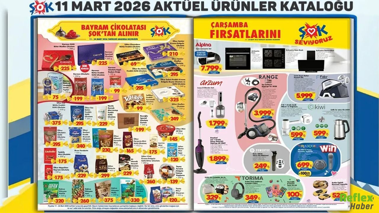 ŞOK Market’in 11 Mart 2026 tarihli aktüel ürünler kataloğu tüketicilerle buluştu. Bu haftaki katalogda hem haftanın fırsat ürünleri hem de yaklaşan Ramazan Bayramı için hazırlanan indirimler yer alıyor. Ev elektroniğinden mutfak ürünlerine, otomobil aksesuarlarından gıda ürünlerine kadar birçok kategoride dikkat çeken kampanyalar sunuluyor. ŞOK Market’in yeni kataloğunda özellikle beyaz eşya, temizlik ürünleri ve bayram alışverişine yönelik gıda ürünleri ön plana çıkıyor.