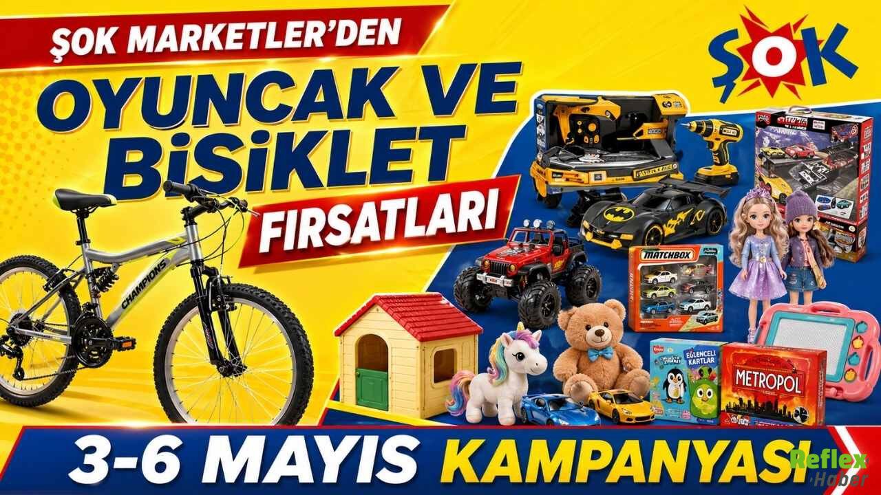 ŞOK Marketler, 3-6 Mayıs tarihleri arasında geçerli olacak yeni kampanyasını duyurdu. Bu hafta sonu alışverişini ŞOK veya Cepte ŞOK üzerinden yapacak müşteriler, çeşitli oyuncak ve bisiklet modellerinde cazip fırsatlardan yararlanabilecek.