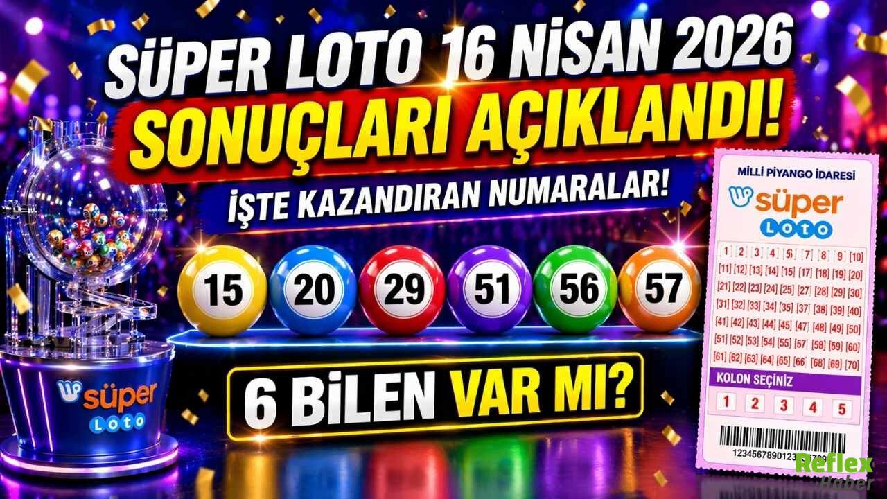 16 Nisan 2026 Perşembe günü yapılan Süper Loto çekilişinde kazandıran numaralar 15, 20, 29, 51, 56 ve 57 oldu. Çekiliş sonuçlarının açıklanmasının ardından kupon sahipleri numaralarını kontrol etmeye başladı. Büyük ikramiye tutarının yüksek seviyede olması nedeniyle sonuçlara ilgi daha da arttı.