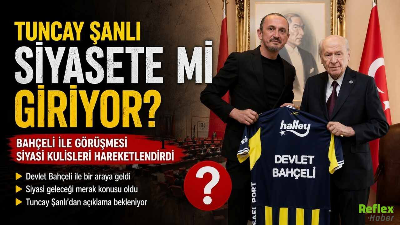 Eski milli futbolcu Tuncay Şanlı’nın, MHP Genel Başkanı Devlet Bahçeli ile gerçekleştirdiği ziyaret “siyasete mi giriyor?” sorularını gündeme getirdi. Ziyaretin ardından resmi bir açıklama yapılmazken, Şanlı’nın aktif siyasete adım atabileceği yönünde kulislerde çeşitli değerlendirmeler yapılıyor.