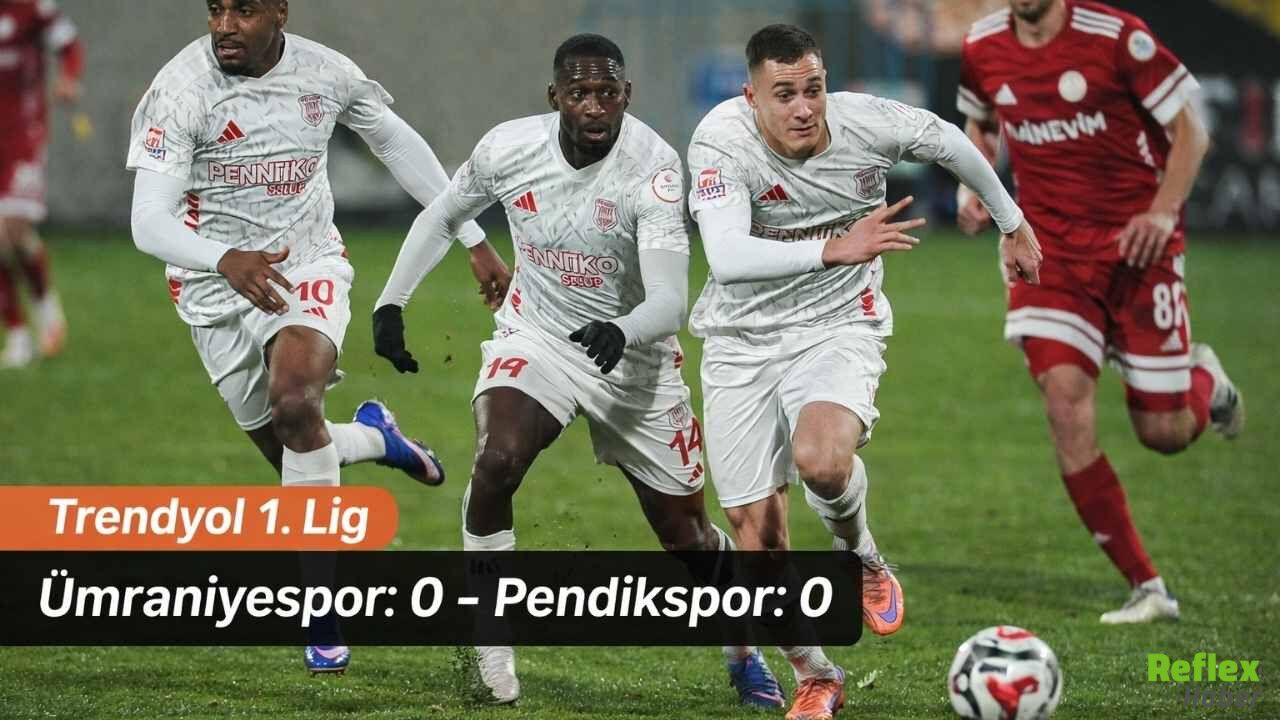 Trendyol 1. Lig’in 32. haftasında Ümraniyespor ile Pendikspor karşı karşıya geldi. Ümraniye Stadı’nda oynanan mücadelede iki ekip de sahadan golsüz beraberlikle ayrıldı. Karşılaşma boyunca her iki takım da zaman zaman etkili ataklar geliştirse de, gol yollarında son vuruşlarda istenilen sonuç alınamadı. Mücadelede orta saha ağırlıklı bir oyun dikkat çekerken, savunmaların disiplinli performansı skorun değişmesini engelledi. Ev sahibi Ümraniyespor, taraftarı önünde galibiyet ararken; Pendikspor ise deplasmandan puanla dönerek hanesine katkı sağladı. Bu sonuçla birlikte iki takım da haftayı birer puanla tamamladı.