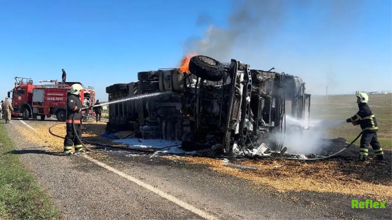 Şanlıurfa’da mısır yüklü bir tırın devrilmesinin ardından çıkan yangın paniğe neden oldu. Kaza, Ceylanpınar ile Viranşehir ilçelerini birbirine bağlayan kara yolunun Gökçayır mevkiinde meydana geldi. Edinilen bilgilere göre Ali E. yönetimindeki 02 AFM 588 plakalı tır, virajı alamayarak kontrolden çıktı ve devrildi. Devrilmenin ardından araçta yangın başladı. Olayın bildirilmesi üzerine bölgeye polis, jandarma, itfaiye ve sağlık ekipleri sevk edildi. Yangın kısa sürede büyürken, ekipler alevlere müdahale etti. Tır tamamen yanarak kullanılamaz hale geldi.