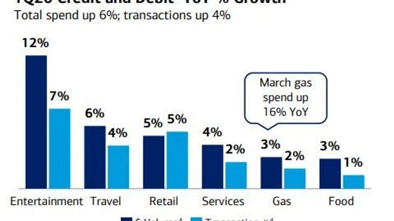 Bank of America müşterilerinin mart ayında benzin harcamaları yüzde 16 artış göstererek tüketiciler üzerinde baskı oluşturdu. Bu artış, benzin fiyatlarının galon başına yaklaşık 4.12 dolara ulaşmasının ardından gerçekleşti.